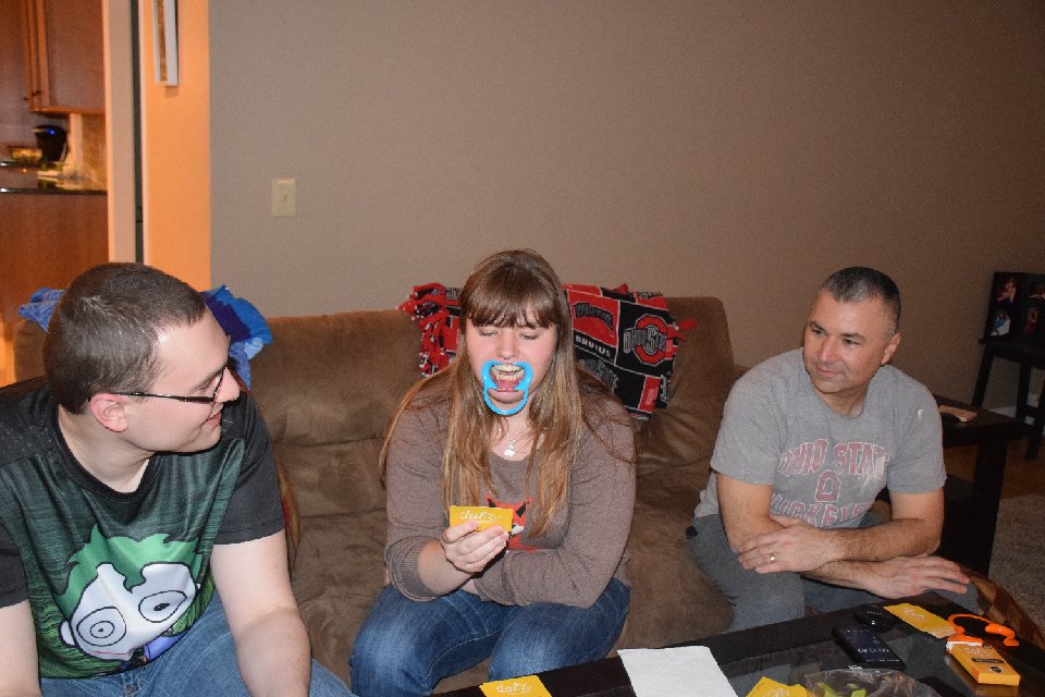 For Christmas, Aunt GA got the children the LOLZ game. It is an easy concept, take a mid-evil device for holding your month open and then get your team members to guess the phrase that you are saying. It is a blast to watch, except for the excessive drooling that happens when people talk and can’t close their lips. On a side note, we got to see what our orthodontic money paid for.